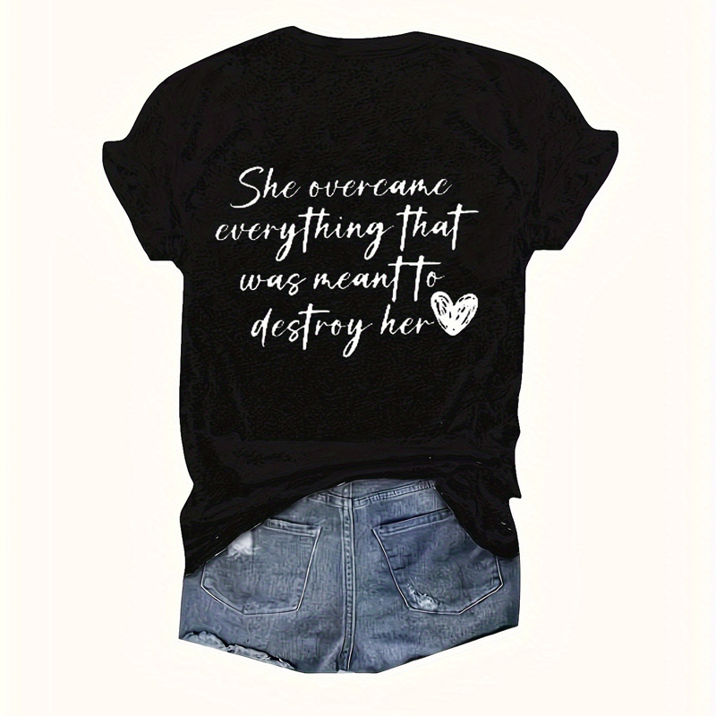 Women’s Slogan & Heart Print Round Neck Tee – Casual Summer Essential