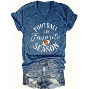 Step up your summer style with this women’s V-neck short sleeve tee , featuring a bold letter & football print that adds an athletic edge to your casual looks. The flattering V-neckline elongates the neck for a more feminine silhouette.
